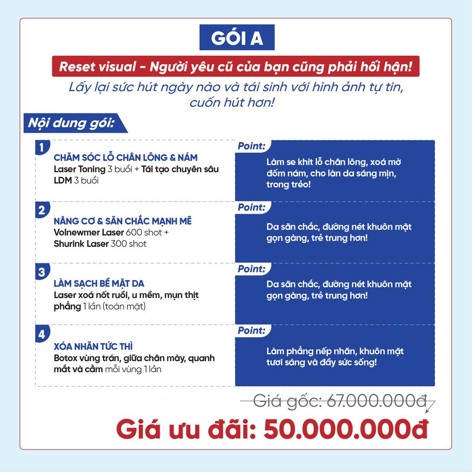 Mục tiêu: Tái sinh diện mạo, làm mới làn da và gương mặt mạnh mẽ, tươi trẻ.