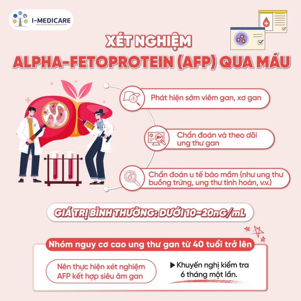 HBsAg, Anti-HCV, AFP theo chỉ định bác sĩ nếu có yếu tố nguy cơ