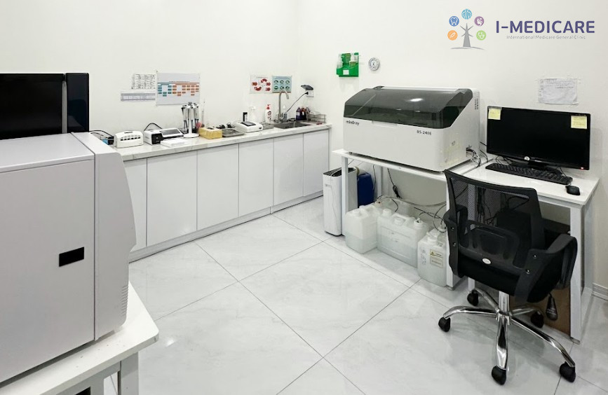 Quy trình tại I-Medicare được thiết kế để tránh tình trạng bệnh nhân phải di chuyển giữa nhiều quầy hoặc chờ đợi không rõ lý do. Sau khi tiếp nhận, điều dưỡng sẽ lấy mẫu máu trong phòng lấy mẫu riêng biệt, đảm bảo điều kiện vô khuẩn. Mẫu được chuyển ngay đến phòng xét nghiệm trong nội bộ và xử lý bằng hệ thống sinh hóa tự động – giúp rút ngắn thời gian chờ kết quả.