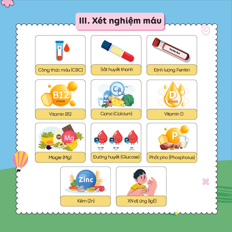 Các chỉ số này giúp bác sĩ phát hiện sớm tình trạng thiếu vi chất, thiếu máu, rối loạn đường huyết, dị ứng hoặc suy giảm miễn dịch, những yếu tố ảnh hưởng trực tiếp đến tăng trưởng, trí não và hành vi của trẻ.