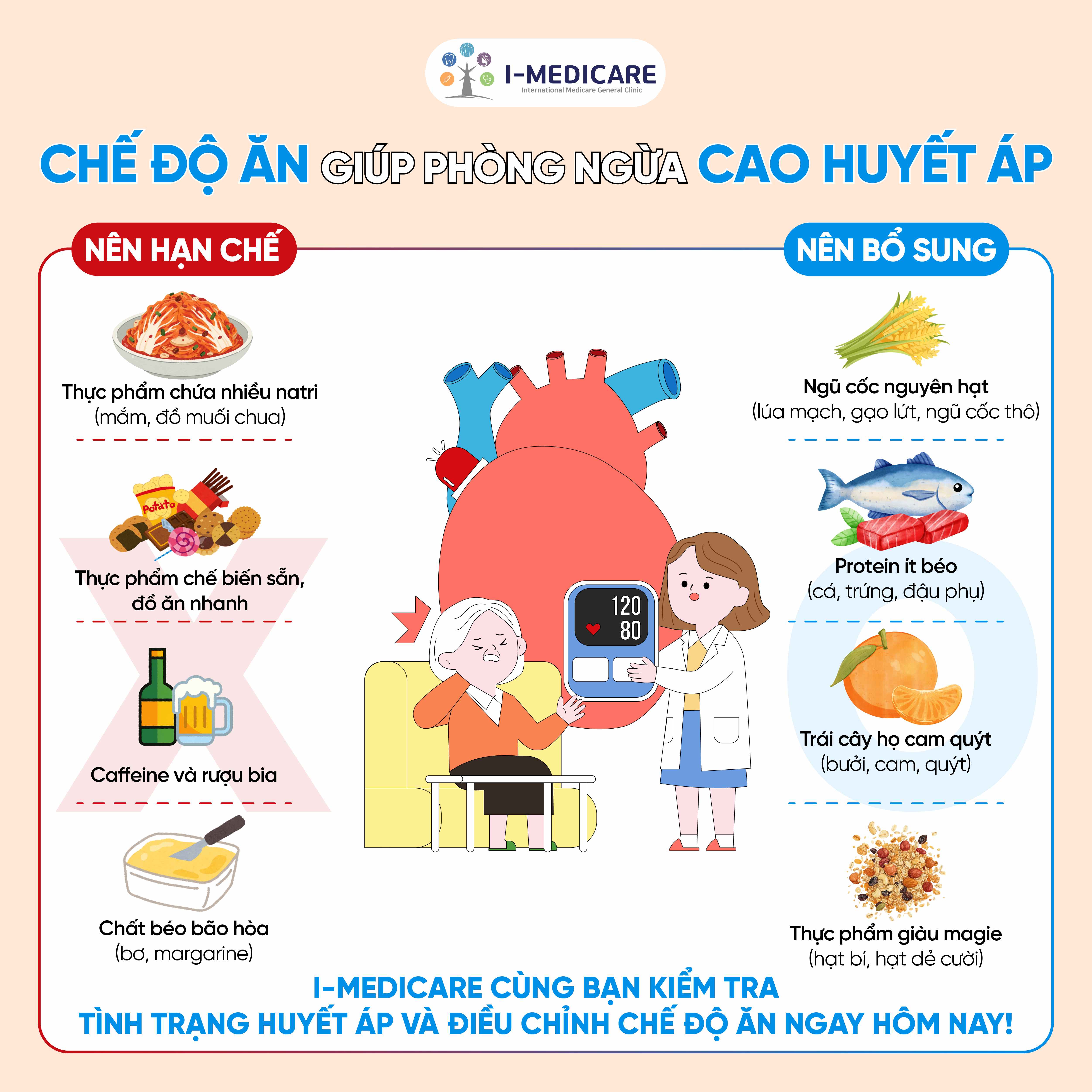 Chúng tôi cam kết đồng hành cùng bạn trong việc chăm sóc sức khỏe toàn diện, giúp bạn phòng ngừa và kiểm soát huyết áp hiệu quả. Bài viết trên giúp bạn hiểu rõ hơn về các yếu tố ảnh hưởng đến huyết áp và cách điều chỉnh chế độ ăn uống sao cho phù hợp. Nếu bạn có bất kỳ câu hỏi nào hoặc muốn kiểm tra huyết áp, đừng ngần ngại liên hệ với I-Medicare ngay hôm nay!