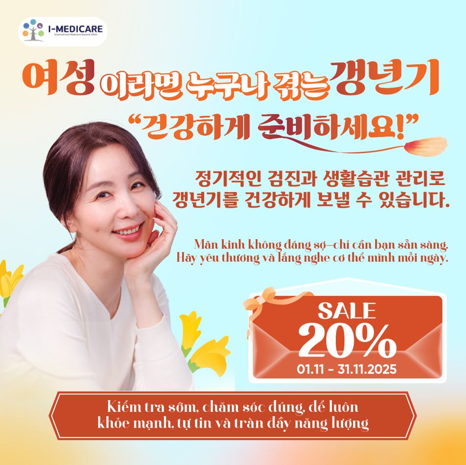 🎉 Giảm 20% phí kiểm tra sức khỏe giai đoạn mãn kinh