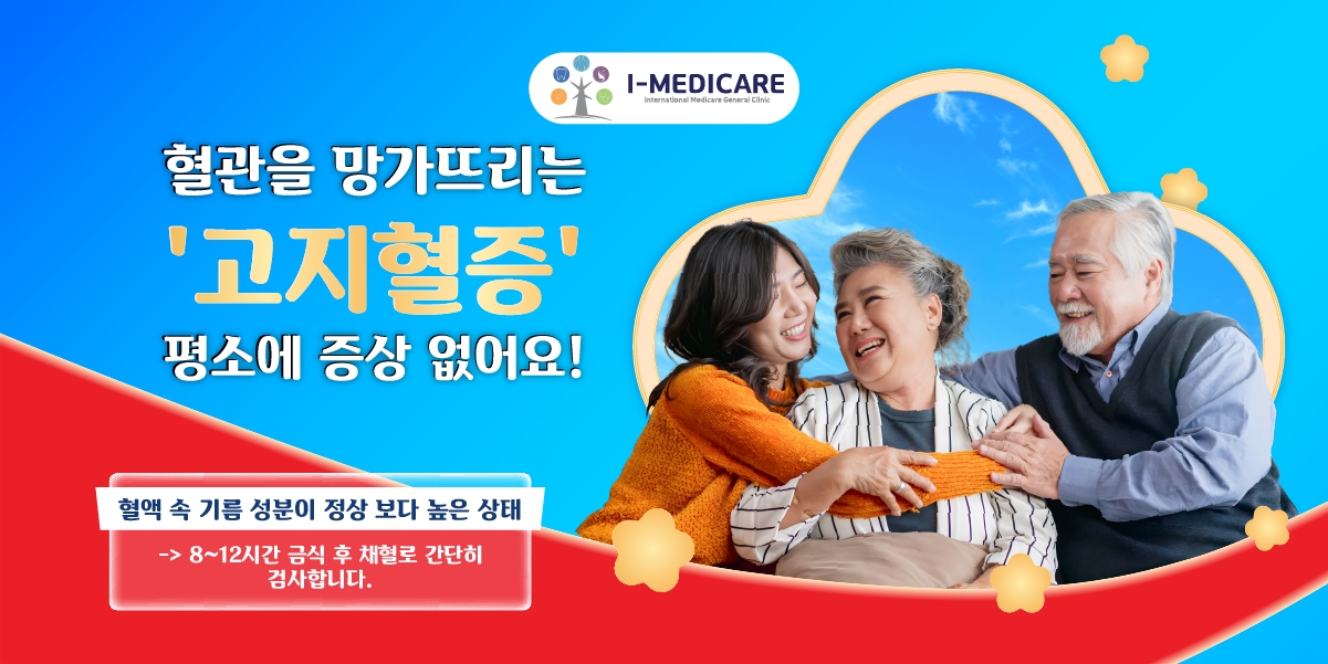 건강한 혈관, 활력 있는 삶을 위해 지금 바로 I-Medicare 종합진료센터에 문의하시어 전문적인 혈중 지질 검사를 받아보시기 바랍니다.
