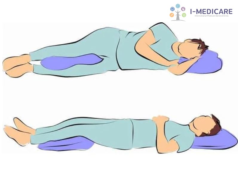 Khi nằm ngửa, có thể đặt thêm một chiếc gối nhỏ hoặc cuộn khăn mềm kê dưới đầu gối. Điều này giúp giảm áp lực lên cột sống thắt lưng, làm thư giãn cơ lưng dưới và hạn chế cảm giác đau mỏi khi phải nằm lâu. Việc lựa chọn đệm có độ cứng vừa phải cũng góp phần duy trì sự ổn định cho cơ thể mà không gây lún quá sâu.
