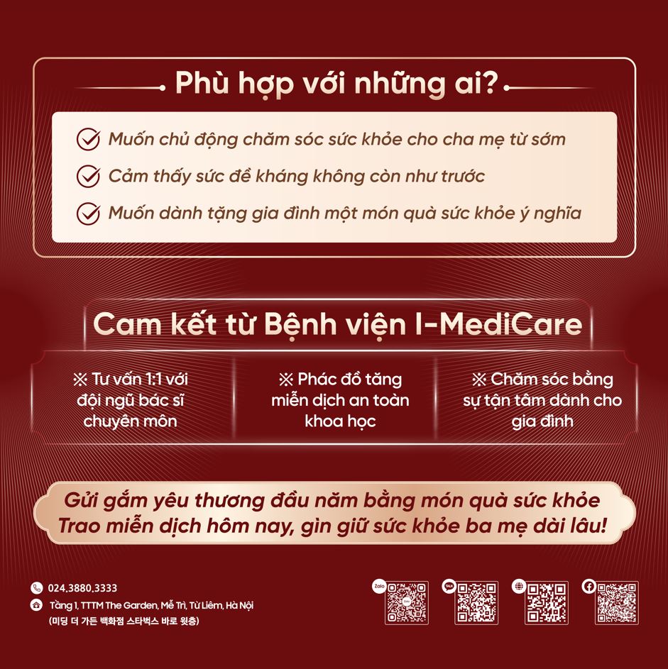 Nâng tầm miễn dịch hôm nay chính là cách giữ gìn sức khỏe cha mẹ dài lâu trong tương lai. Đầu năm mới 2026, hãy để I-MEDICARE đồng hành cùng gia đình bạn bằng những giải pháp y khoa chuẩn mực, an toàn và giàu giá trị nhân văn.