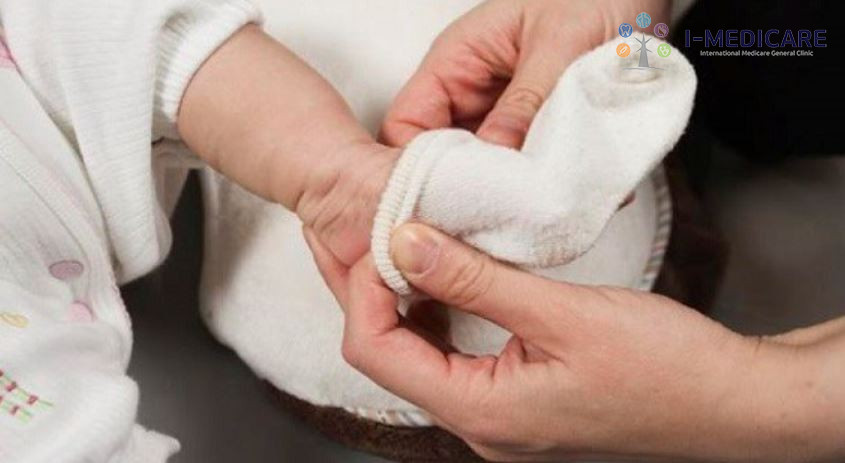 Lưu ý: Không sờ tay chân để đánh giá, vì tay chân trẻ thường mát bình thường do tuần hoàn chưa hoàn thiện.